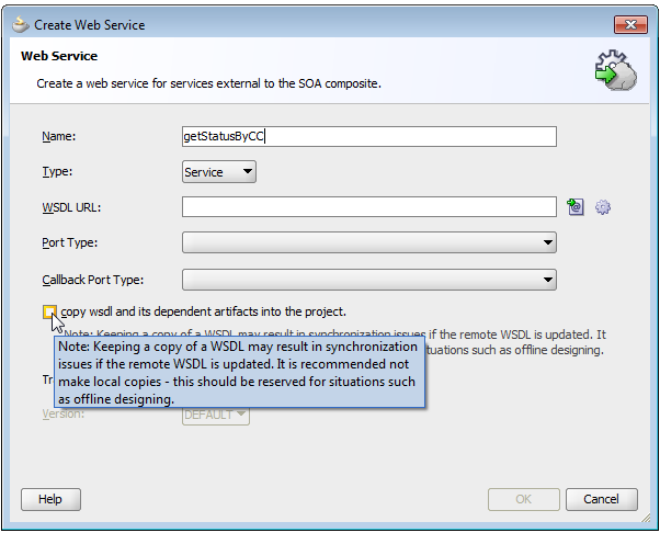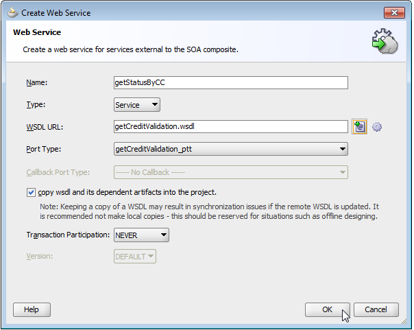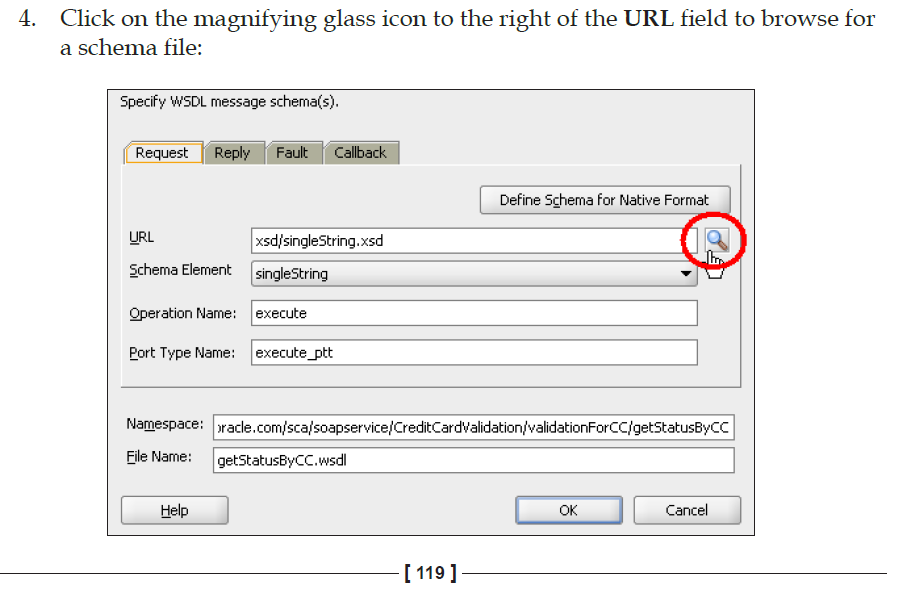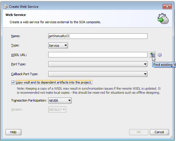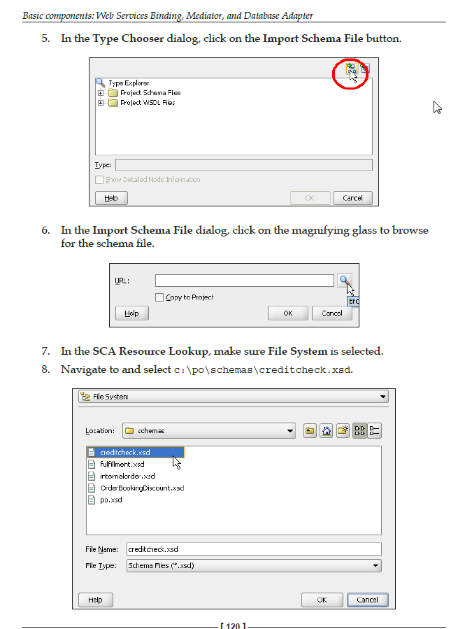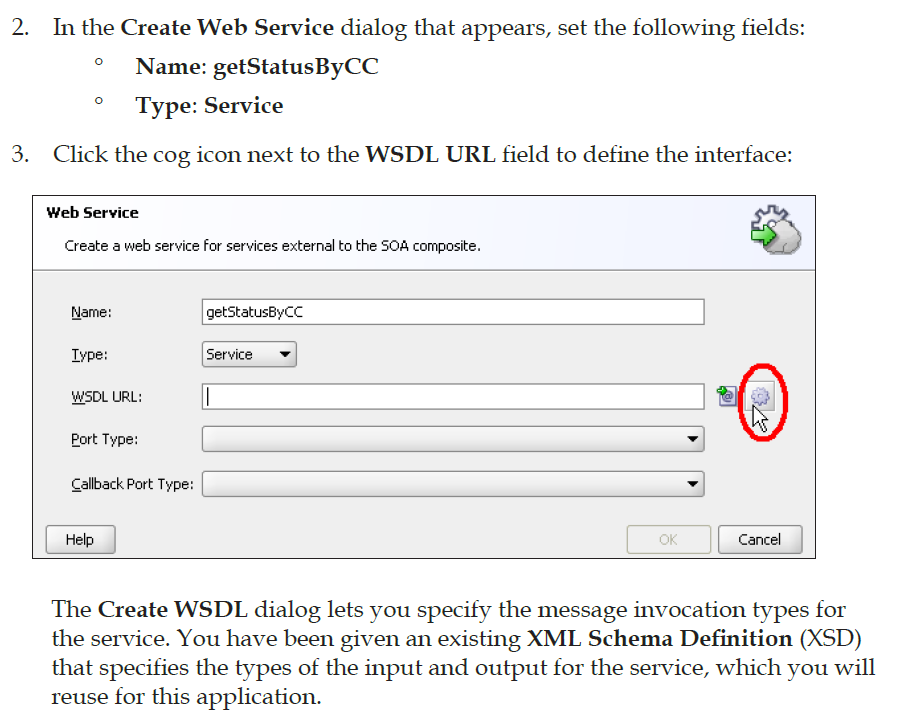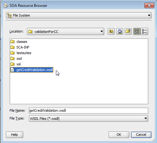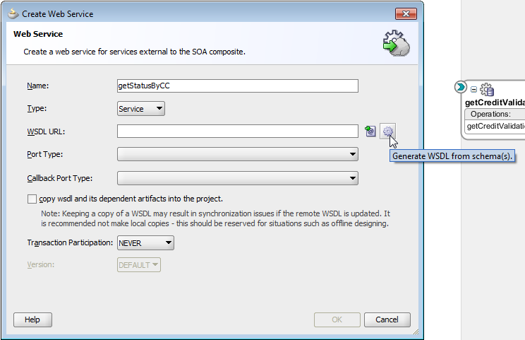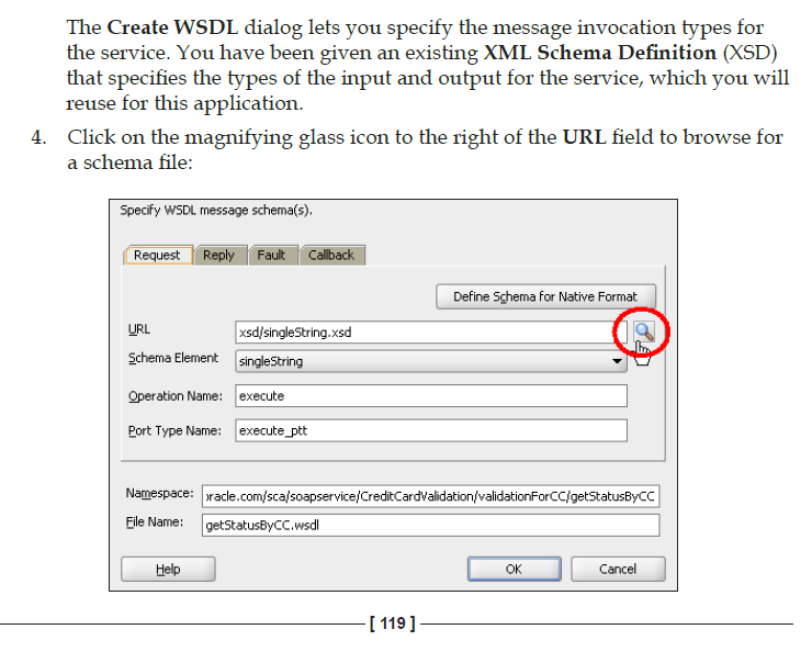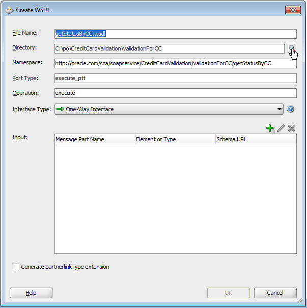 单击绿色+在其中显示输入-这将引导您到您可以选择的类型。您单击的搜索-间谍图标是保存它将根据XSD生成的WSDL的位置。通过单击Green +来选择XSD。学习Suite的一本很棒的书是这里。从这一点开始,并在后面阅读本教程--在几章中将您从XSD/WSDL带到完整的SOA套件中。