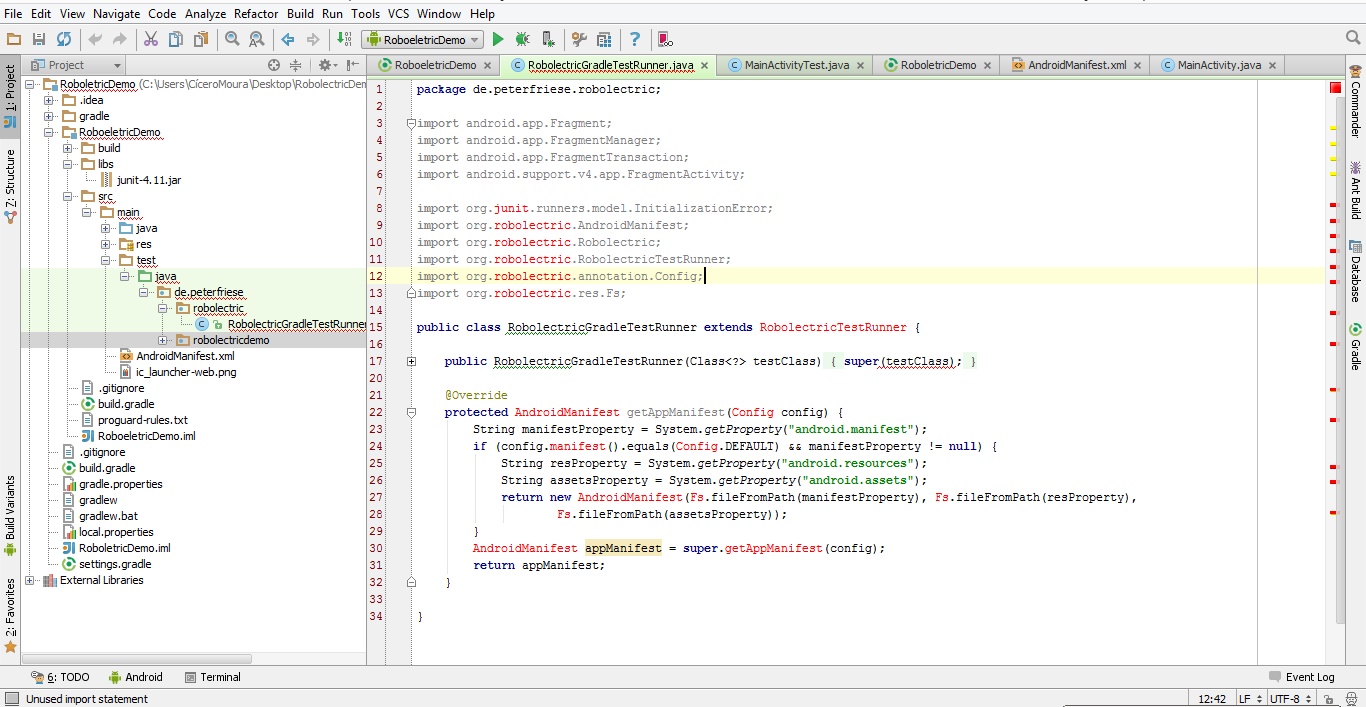 然而,他抱怨说缺乏JUnit和Roboeletric课程。