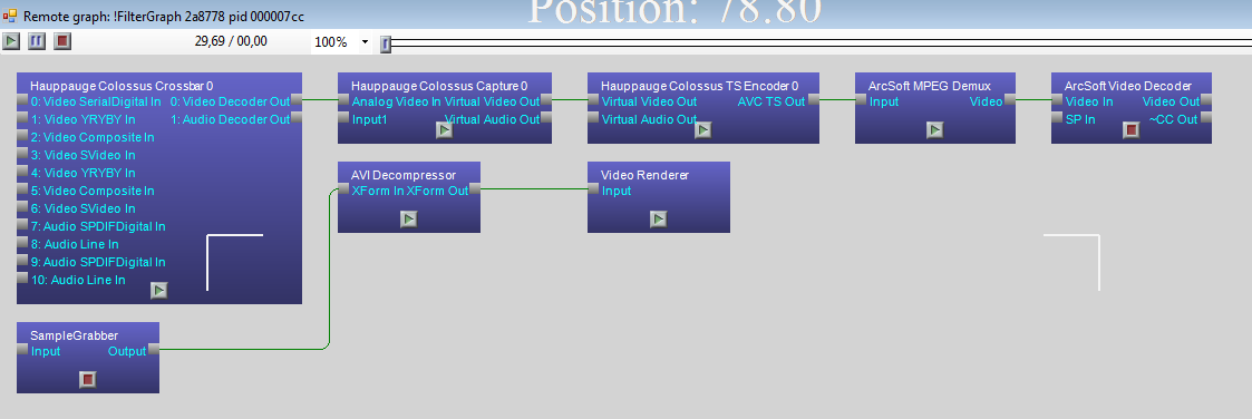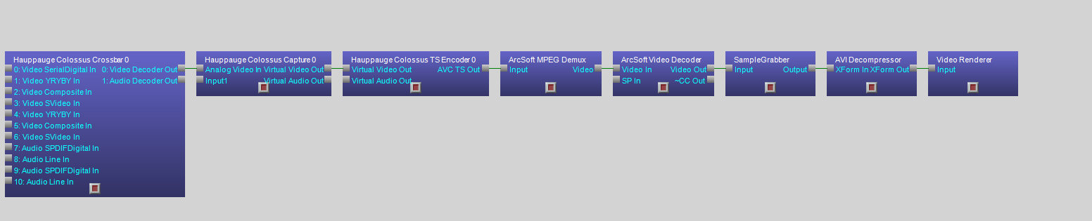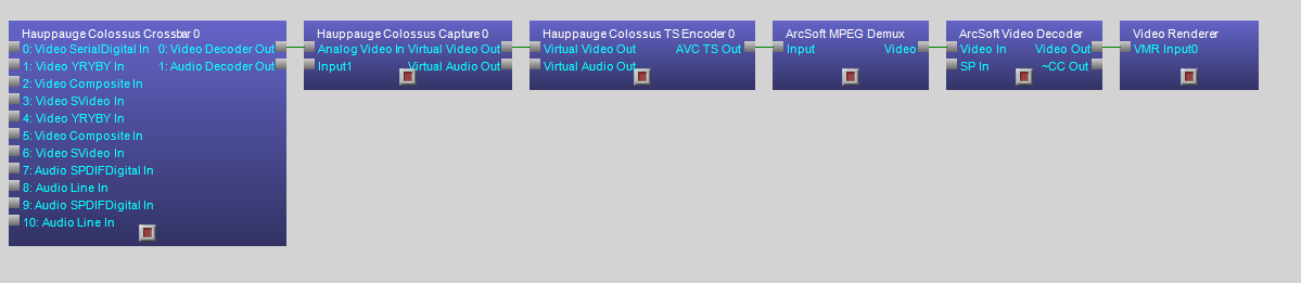//connect Hauppauge Colossus TS Encoder 0 and ArcSoft MPEG Demux