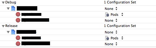 pod配置没有正确地加载到您的项目中,为了测试这一点,您只需在PODS_ROOT下添加“$(/test)/test”,您可以看到它正在解析为'/ test‘,这意味着变量PODS_ROOT没有定义,因此它解析为空字符串。这意味着定义PODS_ROOT的配置文件没有加载到项目设置中。现在检查Xcode项目中的配置文件集(选择项目文件,然后选择'info‘选项卡,在这个展开的’配置‘下),它指的是build.xcconfig和build-debug.xcconfig/build-release.xcconfig。这些文件包括pod配置文件,但所包含的配置文件pods-debug.xcconfig/pods-release.xcconfig不包含所需的pod详细信息。所以,现在我们用正确的配置文件替换了它。您还可以尝试复制粘贴配置文件的内容,以避免替换这些文件。