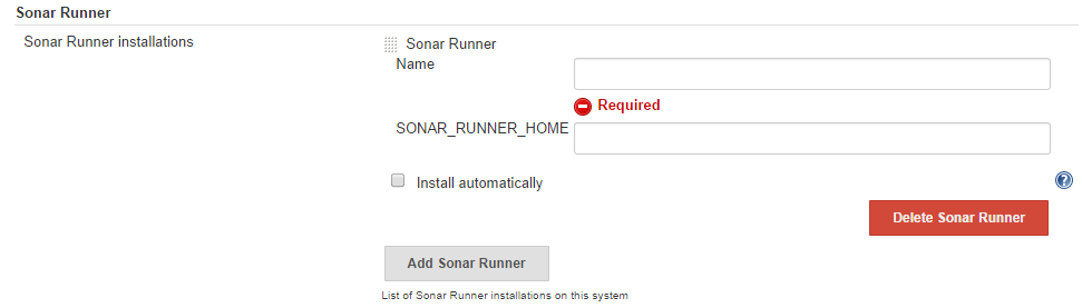 我可以在Sonar (就在电子邮件通知部分的上方)和Sonar Runner在Jenkins > Configure System部分看到。