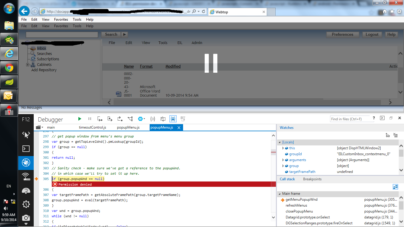 我们有一个使用Documentum webtop的企业应用程序,我们正在通过IE11访问该应用程序。