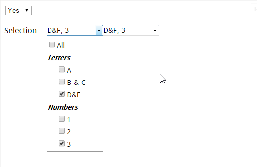 $(".multiple-select").dropdownchecklist();但是,不幸的是,当.selection-content在本地文件中选择"Yes“出现时,多重选择框的下拉列表没有出现。但是,当我把这些代码放在摇摆不定的地方时,它就来了。也许,在我的本地文件中,jquery的版本是不同的。无论如何,我需要在我的本地文件中进行多重选择,而不是篡改。所以,我用这样的方式排列代码: