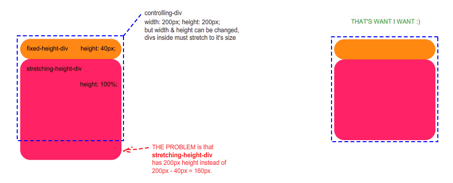 将此样式用于stretching-height-div。这里的高度是100%减去40‘s(固定高度-div的高度)。