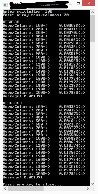 column_sum[i] += b[j][i];现在,我编写了一个工具来测试不同的索引数,但是在我尝试这个概念之后,我没有看到多少性能优势,我担心我的代码与它有关.