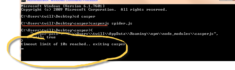 我对casperjs (在幻影上运行)相当陌生--我肯定这里缺少一个基本的编程元素,希望看看是否有人有洞察力。在我的脚本的末尾,我调用了casper.exit(),它确实退出了脚本,似乎返回到了当前目录,但是当前目录没有显示在命令窗口中。