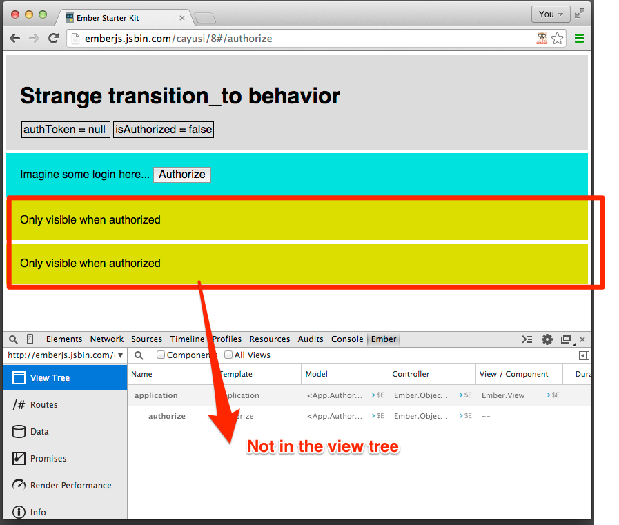 我的期望是secrets模板消失,authorize模板被呈现到{{outlet}}中。