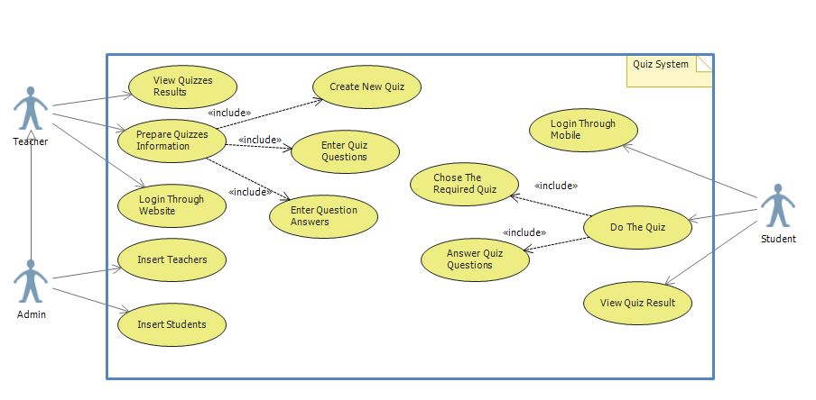 Prepare Quiz Information能否被Create New Quiz取代?Do The Quiz是否可以被Choose The Quiz取代?也请参阅What's is the difference between include and extend in use case diagram?,它说