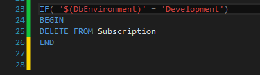 & $sqlpackageexe /Action:Publish /SourceFile:$dacpac /Profile:$dacprofile /TargetConnectionString:$connstring /Variables:DbEnvironment=Development