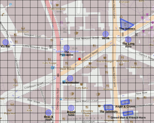 所以..。这是我今天要做的事。请注意,我目前的方法没有实现“甜甜圈”几何(它只是一个直径增长的圆,当用户在地图上“放大”时返回重复的结果)。
