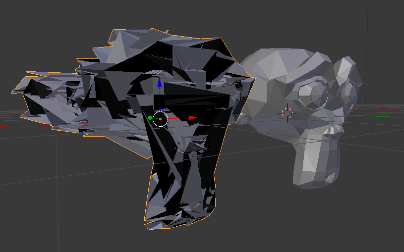 我将Blender的Suzanne猴子网格导出到一个ply文件中,并编写了一个可怕的测试程序,它读取ply文件,提取索引数据,用上述算法对它们进行排序,并组成重新排序的ply文件,准备在Blender中导入,以直观地检查结果.一点也不乐观: