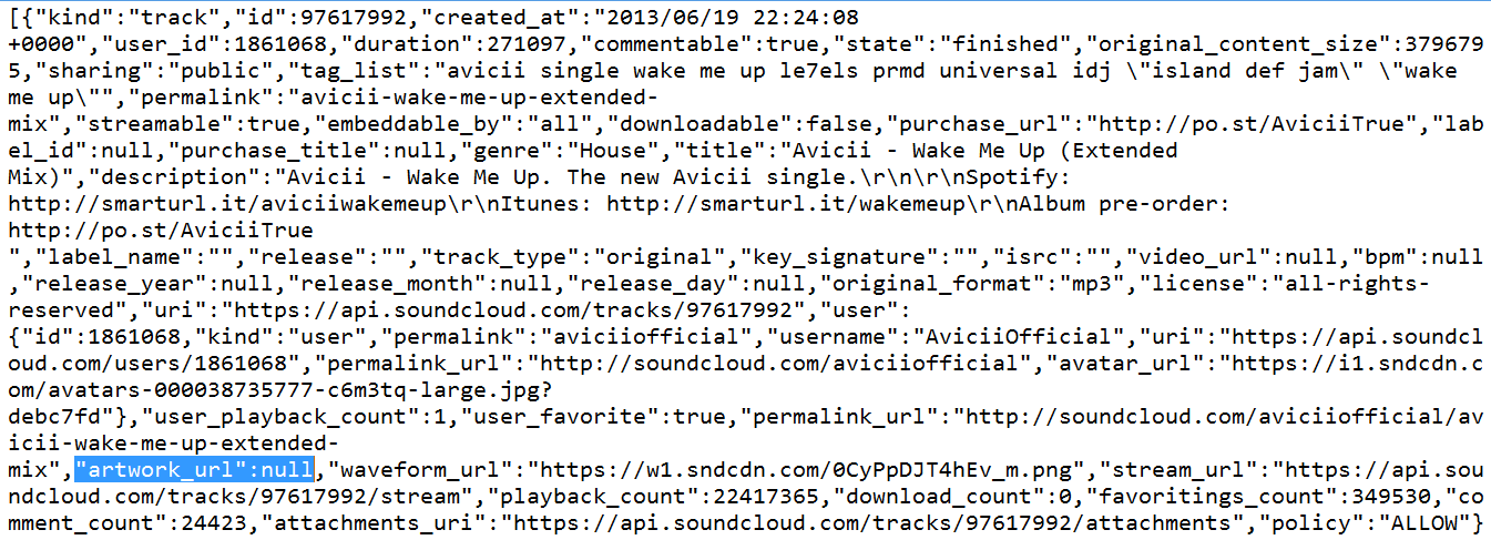 我正在使用Soundcloud来检索我的windows应用程序(使用C#)中的一个列表,一个轨道。在轨道的.json文件中,我看到一些轨道没有返回图像(即"artwork_url":null). )。