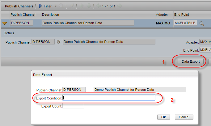 3)在外部系统应用程序的发布通道选项卡上,选择ITASSETDISPOSAL发布通道,然后单击数据导出。