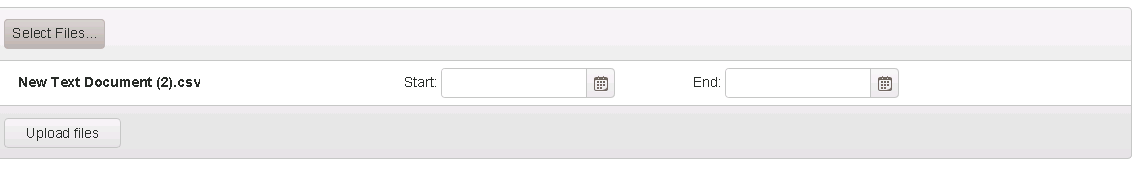 </div></script>下面是事件处理js代码,它收集每个文件的开始和结束日期,并构造一个json对象与多个文件一起发送到后端。