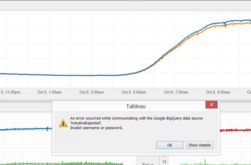 Tableau 8.2桌面版我们每4分钟刷新一次仪表板(使用AutoIt脚本实际执行click和F5),但是每隔半个小时就会弹出这个对话,请求手动激活bigquery身份验证。我们如何才能避免这个问题?我们一直都需要自动刷新。