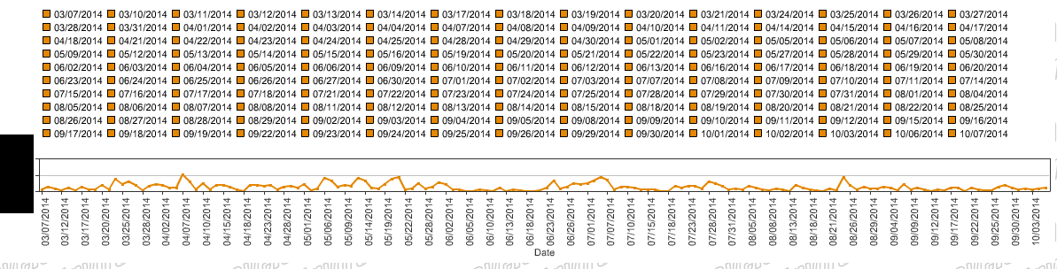 在这个图表中(当只有一个APP_SYS_NR返回时),而不是只有一个标签,所有的日期都变成标签。显然不是我想要的: