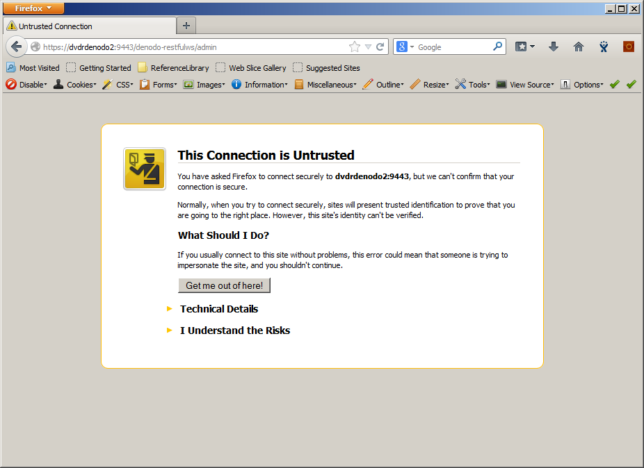 添加异常,您现在使用自己的证书访问Denodo通过HTTPS!
