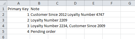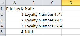 我正在使用一个新的数据库,它忽略了一些最佳实践。与此相关的是,一些数据存储在一个广义的便笺字段中,包括忠诚度数字。好消息是,忠诚度数字至少一直存储在便条中。
