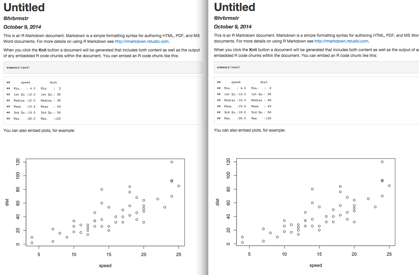 当我按下'knithtml‘按钮,但只运行一个R脚本时,我如何获得这个报告并生成Rstudio生成的相同的东西呢?