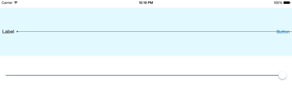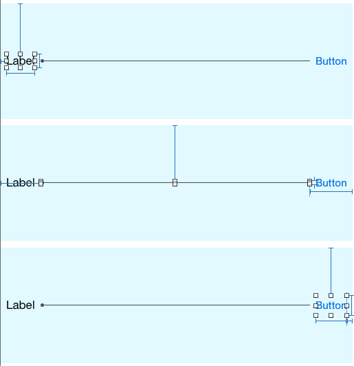 自动布局约束将标签锚定在左侧,按钮固定在右侧,图像视图被锚定在两侧,而没有宽度约束。