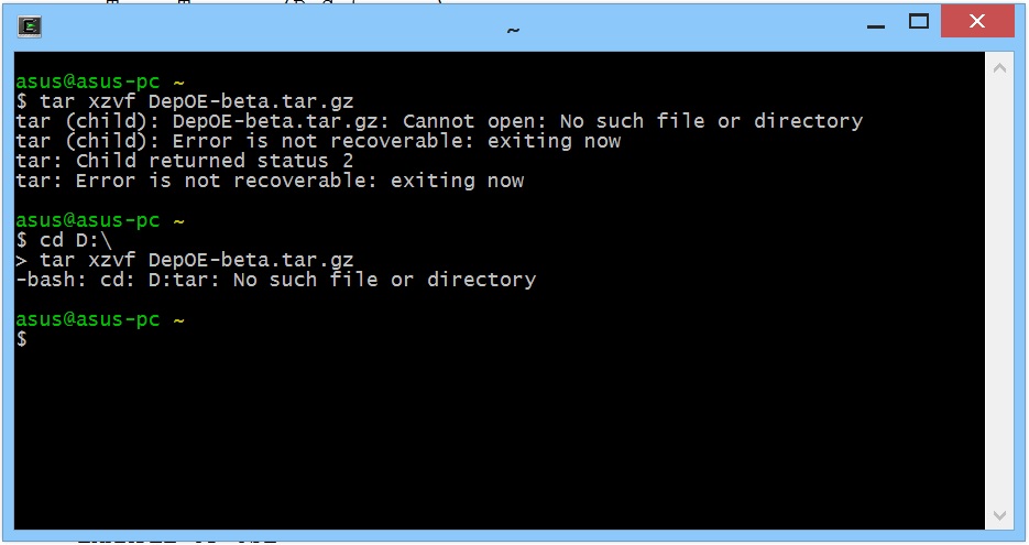file=path of the input file主文件位于D:\DepOE-beta.tar中,但每次使用> tar xzvf DepOE-beta.tar.gz时,都会发生此错误:
