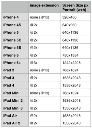 当涉及到优化iDevices上的图形时,从iPhone 4S加上@2x开始就添加了后缀,然后是5带有@2x_568h或类似的东西。所有active iDevices在iOS 7和8上的扩展是什么?