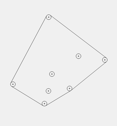 在维基百科中,凸壳是“包含X的最小凸集”。如果凸集是多边形,它可以用顶点中的点来表示。但,这不是的要点。