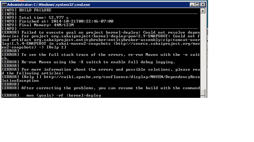 [ERROR] [Help 1] http://cwiki.apache.org/confluence/display/MAVEN/DependencyReso