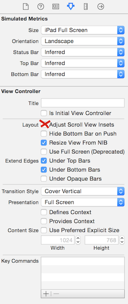 [self setAutomaticallyAdjustsScrollViewInsets = NO];或者,您可以在Web所在的Storyboard中选择,并取消选中以下内容: