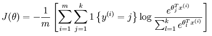 其中m是训练示例的数量,k是类的数量;y是标签;x是特征向量;\theta是权重参数。