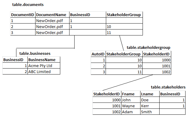 BusinessID这样,在数据库中,对于任何实际与业务有关系的文档,您只会有一行。