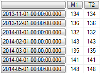 (度量) M1 >0和(度量值) M2 >0的特定(维度)月份