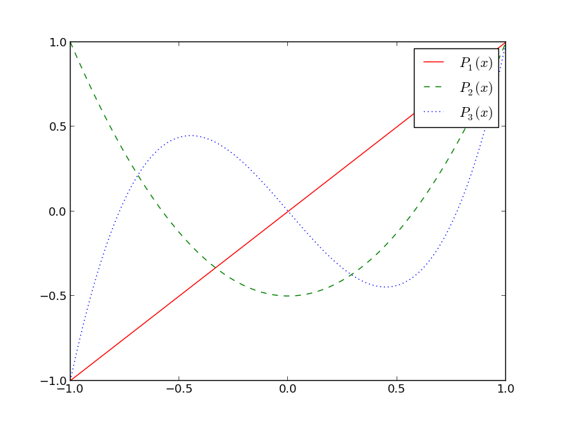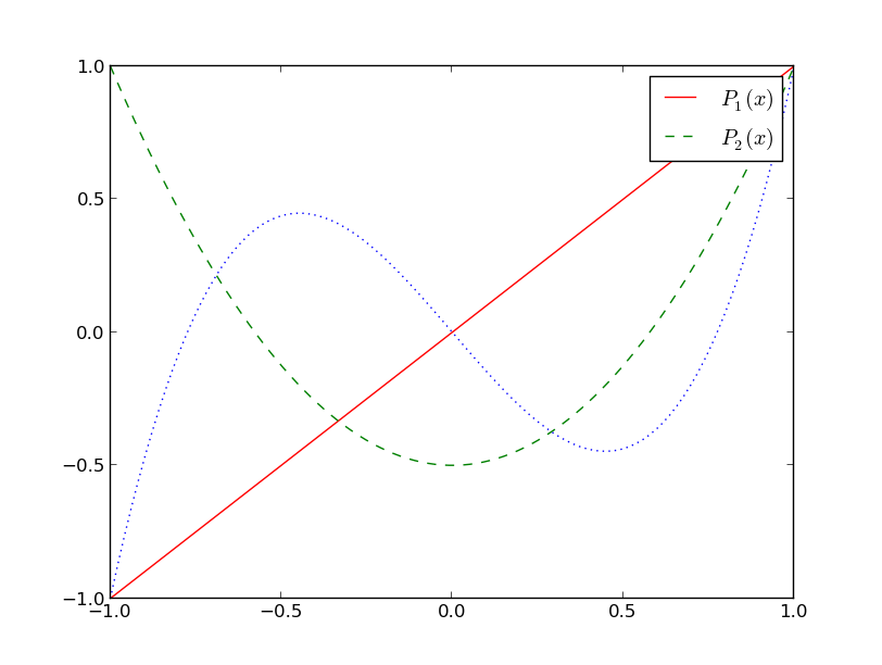 p1, = ax.plot(x,x, color='red', ls="-", label="$P_1(x)$")