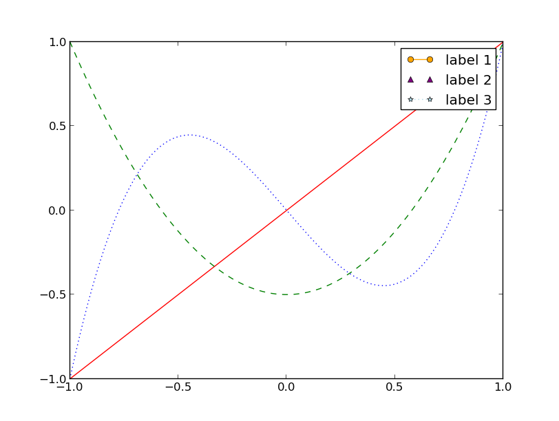 ax.legend([fakeLine1,fakeLine2,fakeLine3], ["label 1", "label 2", "label 3"])