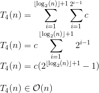 for(int i=1; i <= 2^n; i=i*2) { // log(n)