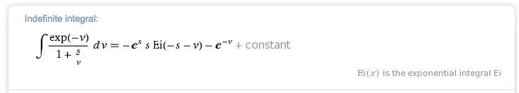 integrate(exp(-v)/(1+sv^-1))然后我得到以下结果