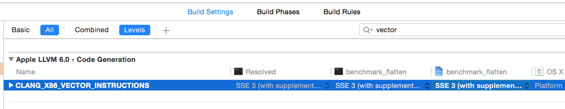 您只需要在构建设置中为向量指令设置代码生成选项: