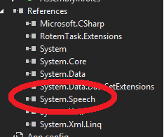 }另外,请确保引用“System.Speech”: