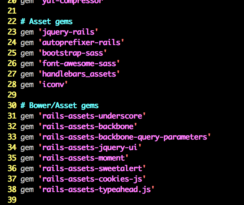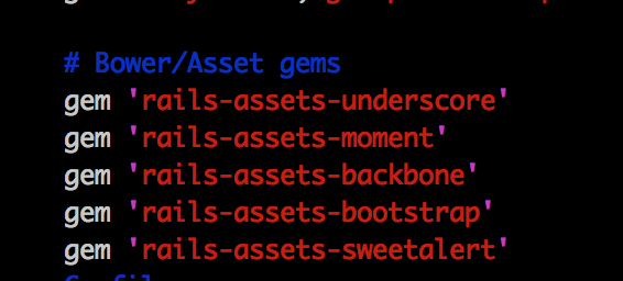FIX I删除了BOWER风格的几个资产宝石,并将其替换为rails特定的gems。我的新创业板文件如下: