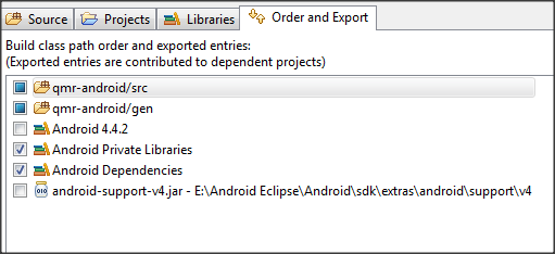 - android.support.v4.widget.DrawerLayout (Open Class, Show Error Log)然后在中构建路径 ->order和导出