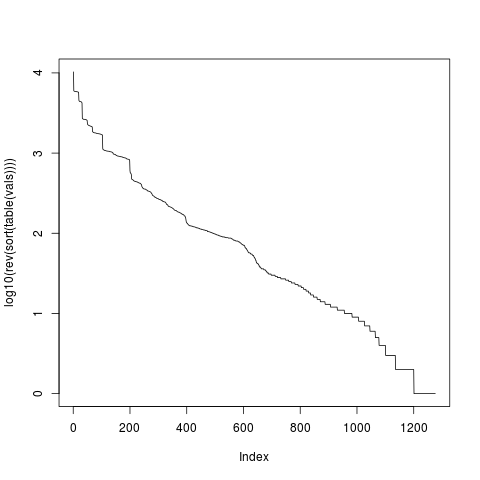 plot(log10(rev(sort(table(vals)))),type="l")