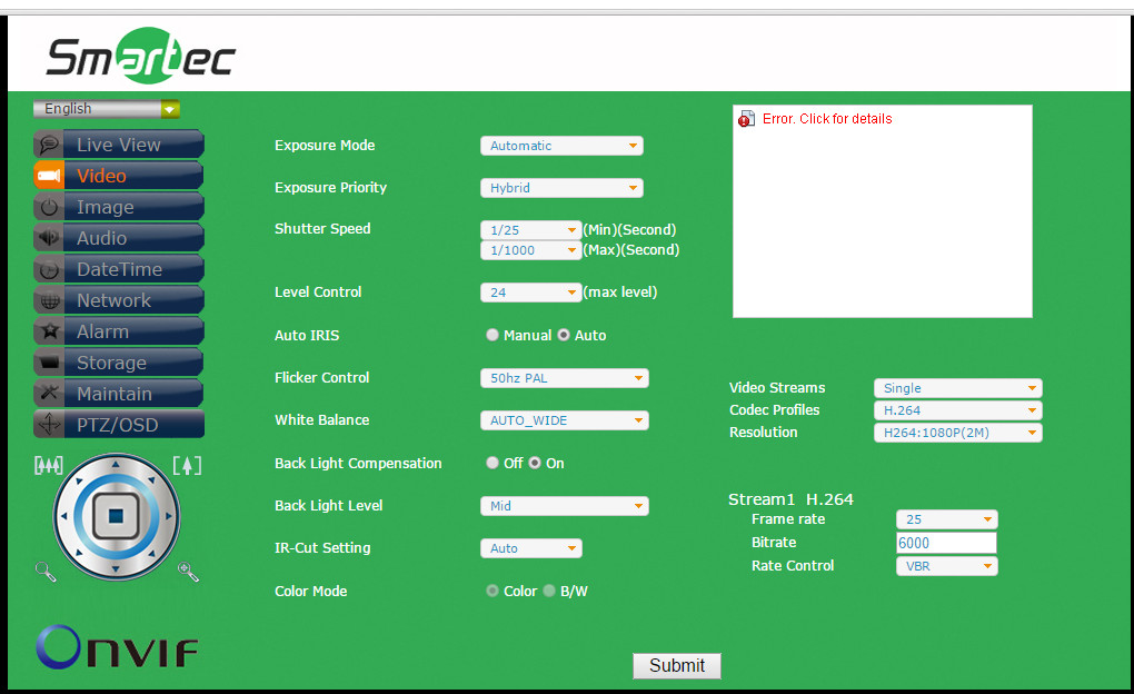我的IP相机上有以下视频流设置(单击以放大):
