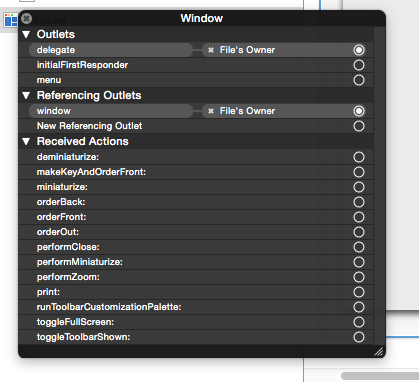 @end再简单不过了..。另外,我在IB中做了一些修改: MainMenu.xib的文件所有者变成了MainWindowController。它的“窗口”出口连接到应用程序的窗口。窗口的委托连接到文件的所有者。好吧,就这样!但是为什么我会收到这个错误呢?我做错了什么?