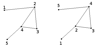如果两个图是完全相同的,则它们是自同构的,包括顶点标号。以下两个图是自同构的。这似乎微不足道,但由于技术原因,这是很重要的。