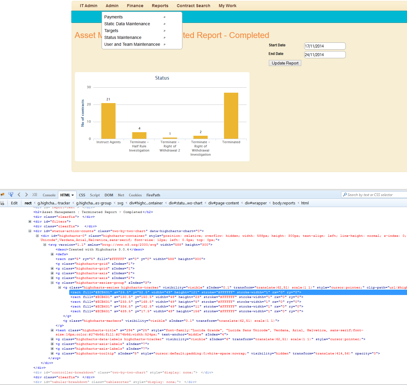 </g>我希望通过编写下面的代码,我可以从右边的图表中选择一个条形图。我的想法是,在某种程度上,我需要使用'div id=‘控制器-故障’元素来识别我试图到达的代码块,因为这是唯一的。
