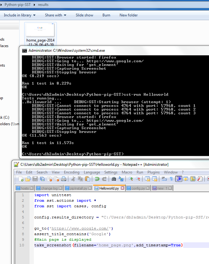 我有下面的脚本为我工作使用谷歌。诀窍是将结果目录添加到位于@{dir}\Python27\Lib\site-packages\sst\config.py的实际配置文件中,并添加results_directory = "C:\Users\{me}\Desktop\Python-pip-SST\results"。