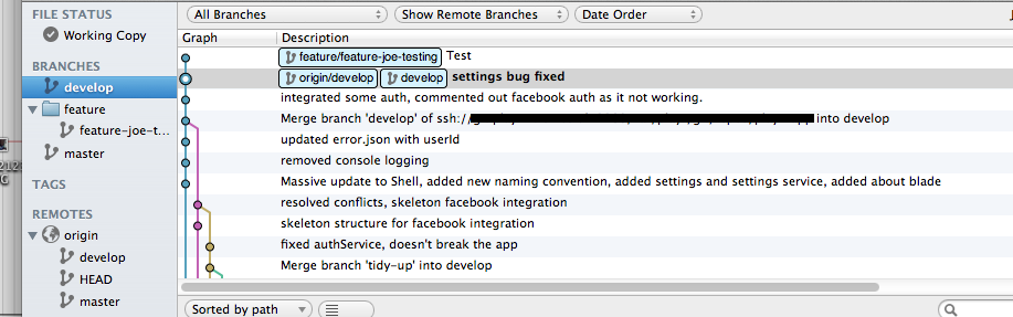 我刚刚加入了一个项目,我想做一个快速的测试,以确保我能够正确地制作一个特性,并将其合并到其中。我似乎正确地遵循了教程中的所有内容。我签出了这个项目,我点击Git流,启动一个特性,做一个更改,将更改提交到我的特性。我正在查看不同的视图,图形看起来要么是错误的,要么项目设置的方式是错误的,或者.我不知道。从图片上看应该是显而易见的。