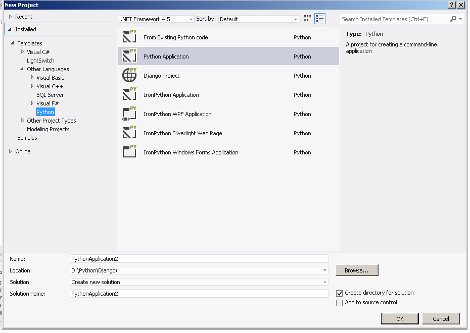 这是我所面临的最常见的问题。但我用用于Visual 2012的pytools解决了这个问题。在安装pytools之后,在new中添加了一个新的项目类别