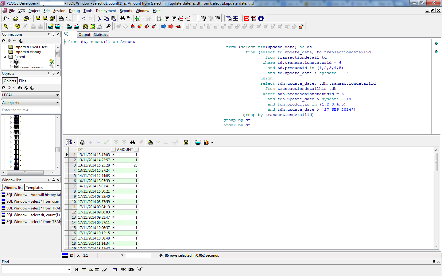 当我直接从PL/SQL执行相同的精确sql时,它工作得很好。