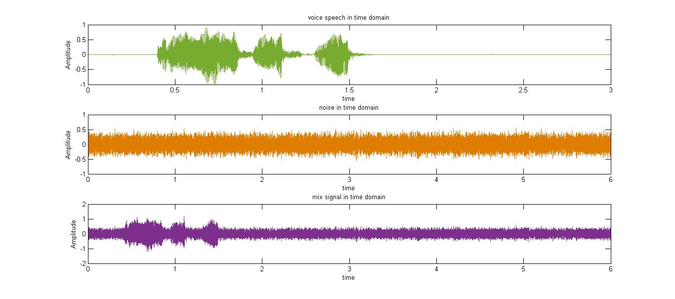 %-- plotting voice speech, noise and mix in time domain --%